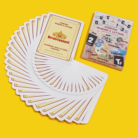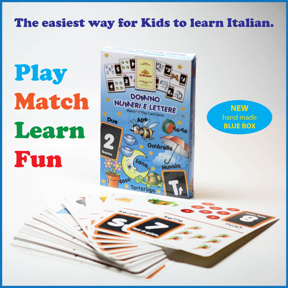 By playing Bravissimi Numbers and Letters Domino young children improve their memory, learn to recognise patterns, count, better their concentration and, in this case, their Italian language skills.